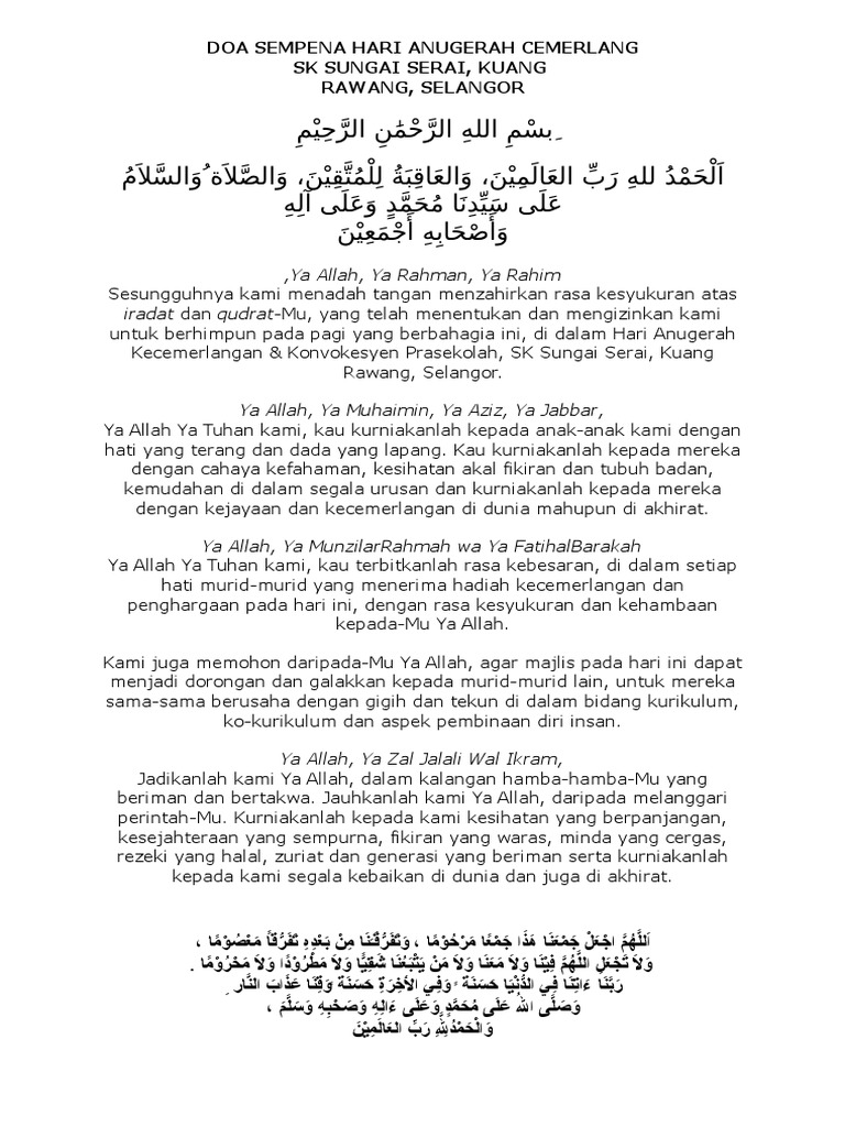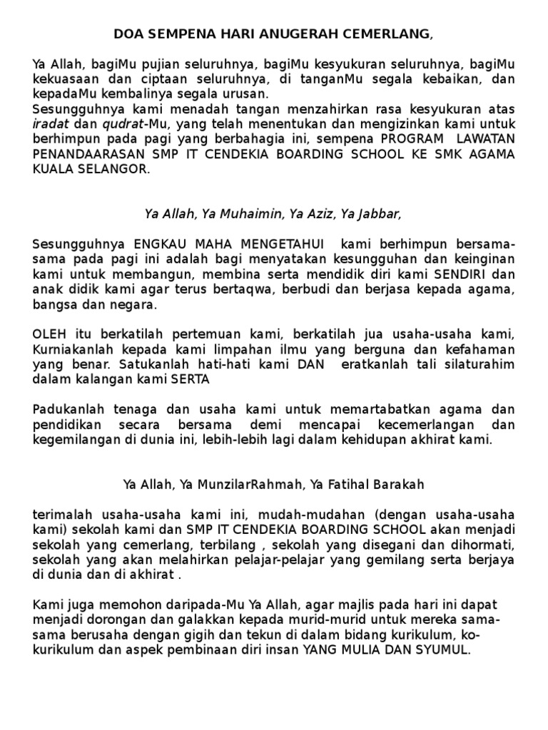 Teks Doa Hari Anugerah Kecemerlangan Pdf