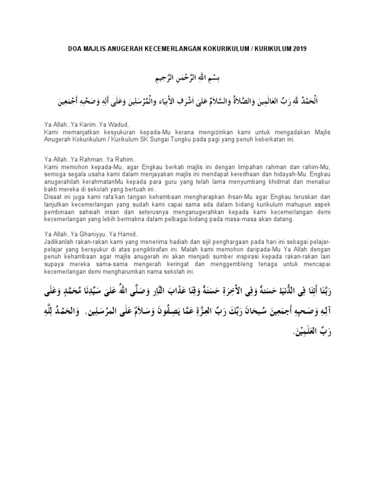 Doa Majlis Anugerah Kecemerlangan Kurikulum 2019 Pdf